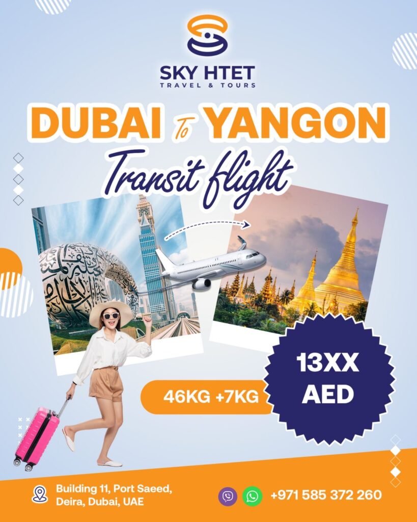 ✅ Yangon-Dubai Flight Ticket (Direct/Transit)