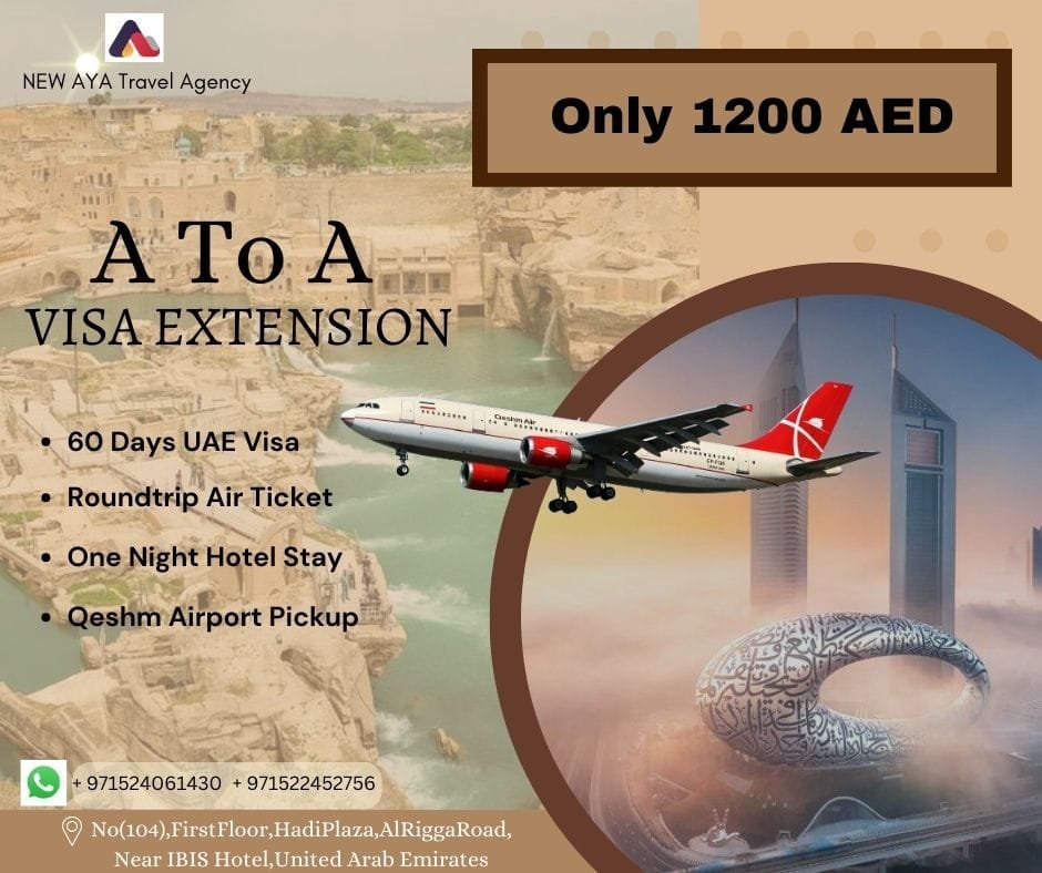 ကဲ.. AED 1200 ထဲနဲ့ သက်သောင့်သက်သာလေး လေယာဥ်စီးပြီး Visa သက်တမ်းတိုးချင်တယ်ဆိုရင် New Aya သို့ အမြန်လေးသာ လှမ်းခဲ့လိုက်ပါတော့.