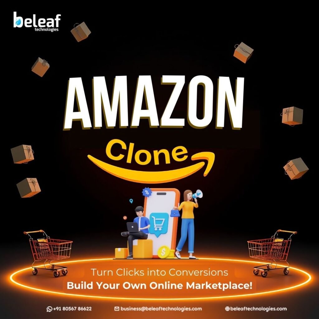 Want to build an online store like Amazon? Beleaftechnologies offers a ready-to-launch Amazon Clone with powerful features to help you start your e-commerce business quickly. Our solution includes easy product management, secure payments, multi-vendor support, and a smooth user experience.