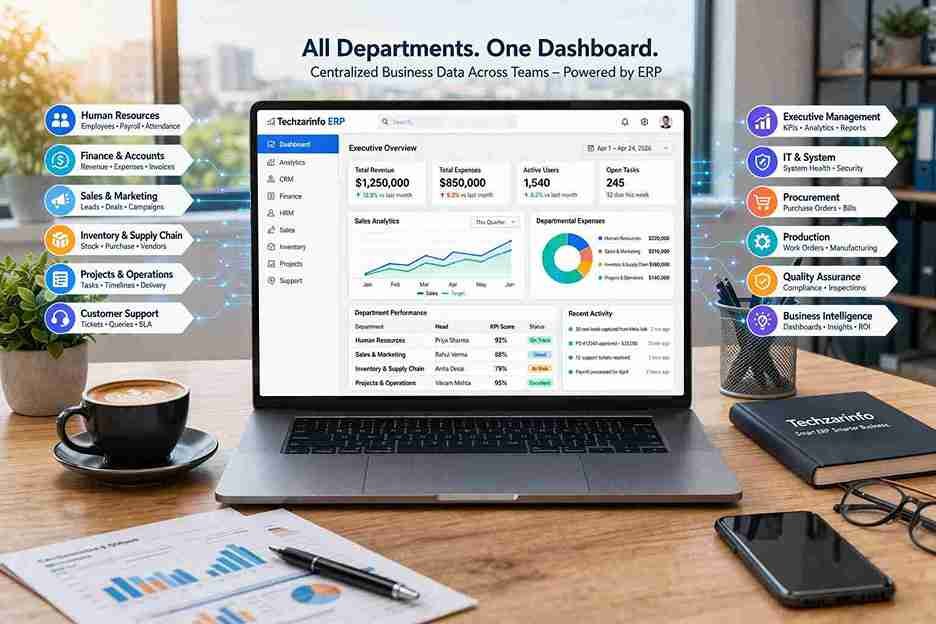 Struggling with scattered data and slow operations? Techzarinfo, a leading ERP software development company, helps automate your entire business workflow. Capture, manage, and track every business process in real time. Avoid manual errors and improve productivity instantly. Make smarter decisions with centralized data insights. Transform your business operations with powerful ERP solutions today!