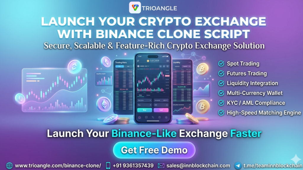 Start your own crypto trading platform like Binance with our secure and scalable Binance Clone Script. Built with advanced features like spot trading, futures trading, liquidity integration, multi-currency wallets, and KYC/AML compliance, it helps businesses launch a professional crypto exchange quickly and cost-effectively.