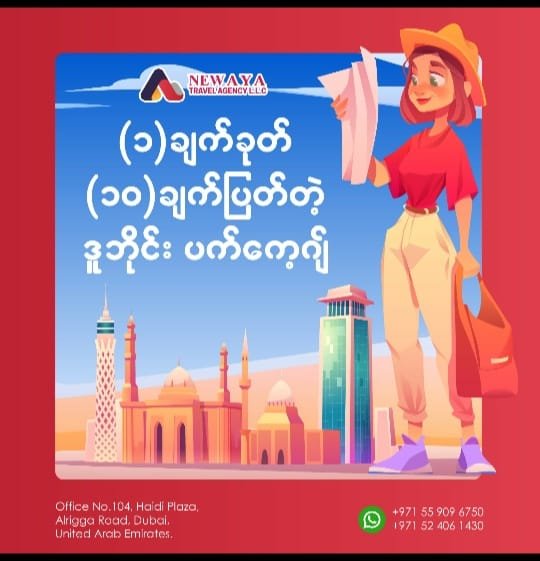 ဟိုတန်းလန်း ဒီတန်းလန်း မဖြစ်ချင်ဘူး… (၁)နေရာထဲကနေservice အကုန်လုံးကို အမိအရယူပြီး ဒူဘိုင်းကို တန်းထွက်ချင်လား.. New Aya ကို ကြွမြန်းခဲ့ပါ..။ 60 days Visit Visa