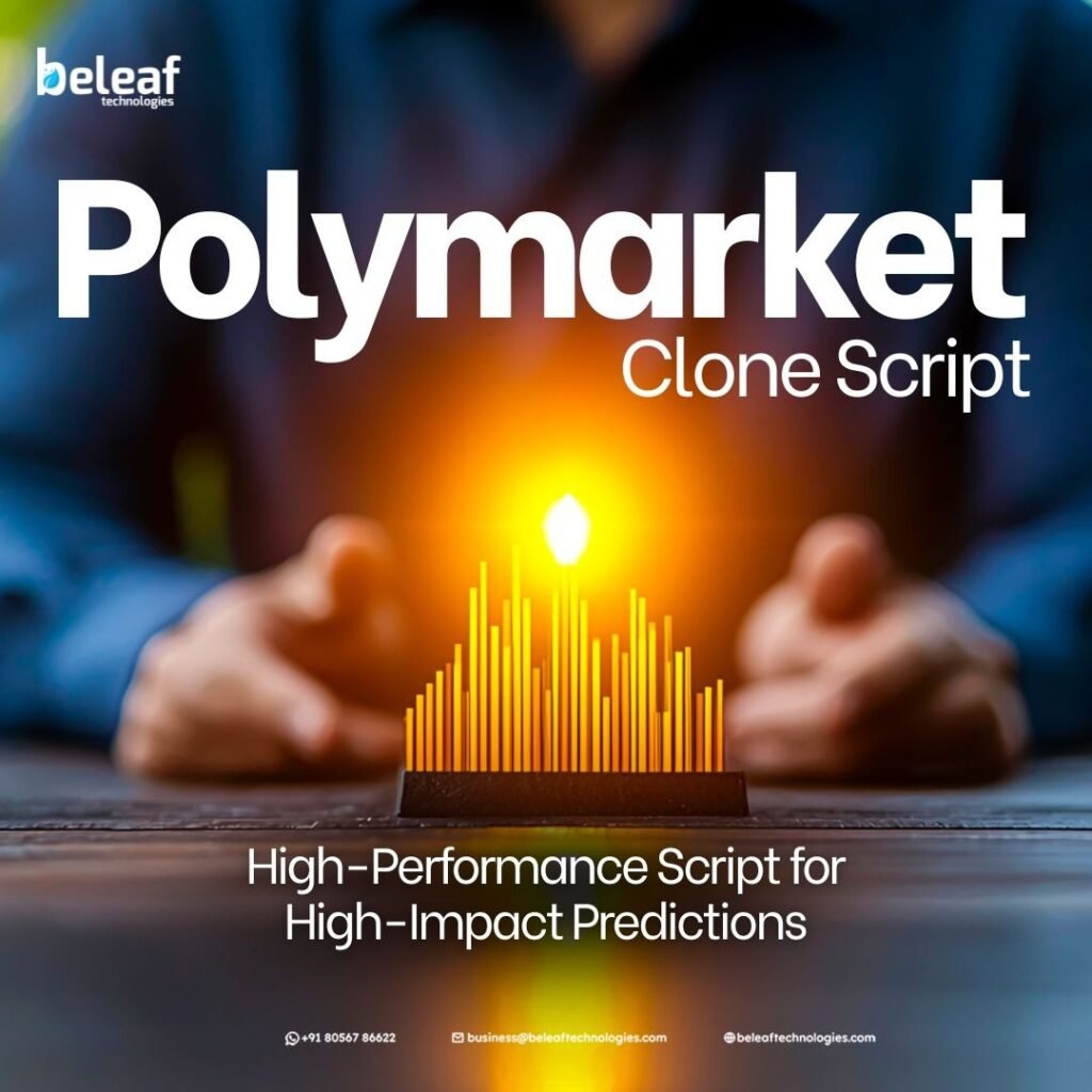 Want to build a high-performance prediction market platform that truly stands out in the successful Web3 space? Our solution empowers startups and businesses to launch faster with advanced, market-ready features. Our advanced Polymarket Clone Script Development delivers a highly scalable architecture, ultra-low latency, and real-time trade execution, ensuring smooth performance even during high user activity. It supports dynamic market creation, accurate pricing models, and seamless user engagement. Equipped with secure smart contracts, end-to-end encryption, and intelligent risk management systems, the platform ensures complete transparency, data protection, and operational integrity across all transactions. With customizable UI/UX, API integrations, liquidity management, and cross-chain compatibility, it adapts easily to enhancing business needs. Choose Beleaf Technologies for cutting-edge, customizable, and enterprise-grade prediction market solutions designed for scalability, innovation, and long-term growth.